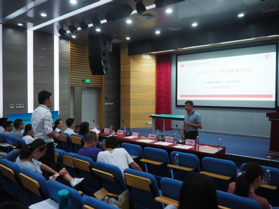 決賽之前,林善平先生給學(xué)生們作了題為“匠心打造,虹潤(rùn)智能制造”的講座,林先生圍繞虹潤(rùn)集團(tuán)傳承的“工匠精神”和“傳統(tǒng)文化”,向?qū)W生們講述了虹潤(rùn)如何通過(guò)不斷尋求發(fā)展道路、不斷發(fā)現(xiàn)問(wèn)題解決問(wèn)題,從“中國(guó)最好”走向“世界最好”的過(guò)程。講座后同學(xué)們就科技創(chuàng)新、大學(xué)生創(chuàng)業(yè)等感興趣的方面向林先生提問(wèn),林先生一一做了耐心解答,現(xiàn)場(chǎng)氣氛活躍。