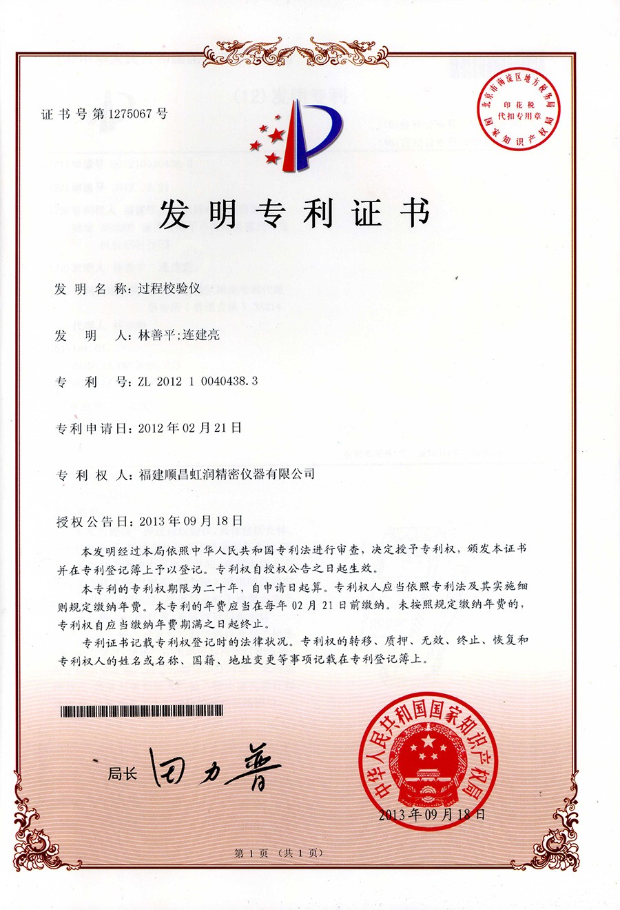| 過程校驗儀發(fā)明