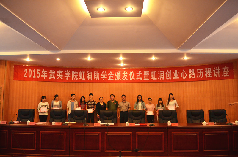 學(xué)生處處長廖斌宣讀了《關(guān)于公布2014-2015學(xué)年“武夷學(xué)院虹潤助學(xué)金”獲得者名單的通知》。生態(tài)與資源工程學(xué)院2013級化學(xué)工程與工藝專業(yè)于海星作為學(xué)生代表做了發(fā)言,她表達(dá)了對林善平先生及學(xué)校的感激之情,表示要奮發(fā)圖強,勤奮學(xué)習(xí),積極參加各類志愿服務(wù)和社會實踐活動,永懷感恩之心,在以后的工作和學(xué)習(xí)中,奉獻(xiàn)社會。