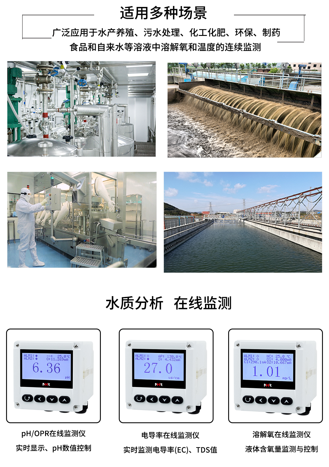 NHR-DO10A系列溶解氧在線監(jiān)測(cè)儀一款智能在線化學(xué)分析儀器,采用膜法測(cè)量溶解氧。控制器可連續(xù)監(jiān)測(cè)數(shù)據(jù)通 過(guò)變送輸出實(shí)現(xiàn)遠(yuǎn)傳監(jiān)控,也可以連接RS485接口,通過(guò)MODBUS-RTU協(xié)議方便聯(lián)入上位機(jī)實(shí)現(xiàn)組網(wǎng)監(jiān)控。廣泛應(yīng)用 于火電、化工化肥、冶金、環(huán)保、制藥、生化、食品和自來(lái)水等溶液中溶解氧和溫度的連續(xù)監(jiān)測(cè)。