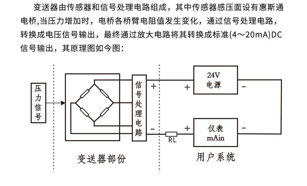 K系列壓力變送器采用具有國際先進(jìn)水平的擴(kuò)散硅傳感器,配合高精度電子元件,經(jīng)嚴(yán)格的工藝過程裝配而成。充分發(fā)揮了傳感器的技術(shù)優(yōu)勢(shì),使該系列壓力變送器具有優(yōu)異的技術(shù)性能。該變送器抗過載和抗沖擊能力強(qiáng)、溫度漂移小、穩(wěn)定性高,具有很高的測(cè)量精度。