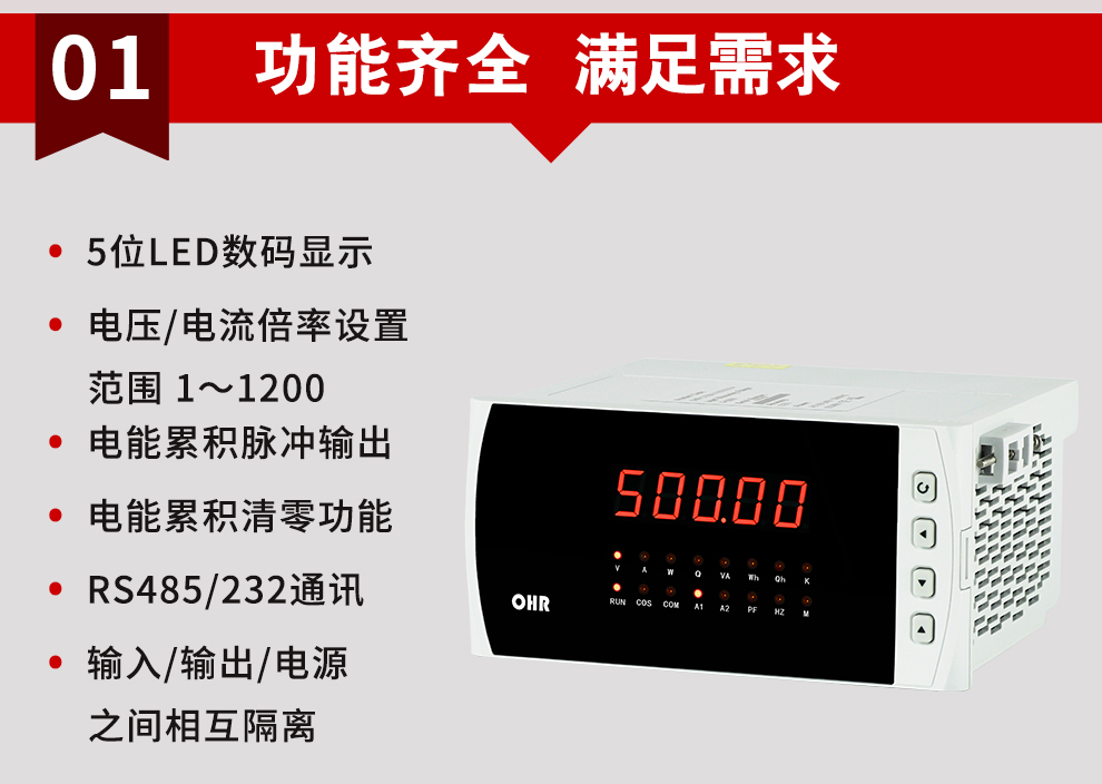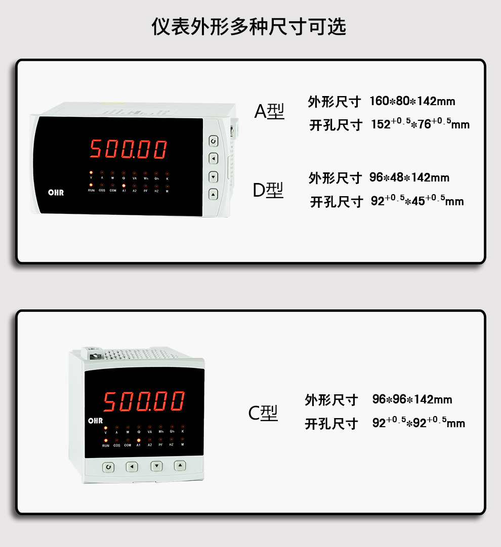 OHR-C100系列單相電量表為新一代可編程智能儀表,它采用大規(guī)模集成電路,應(yīng)用數(shù)字采樣技術(shù),對單相電氣線路中的電壓、電流、有功、無功、功率因素、相位值、頻率、有功電能、無功電能及視在功率進(jìn)行實(shí)時測量與顯示。