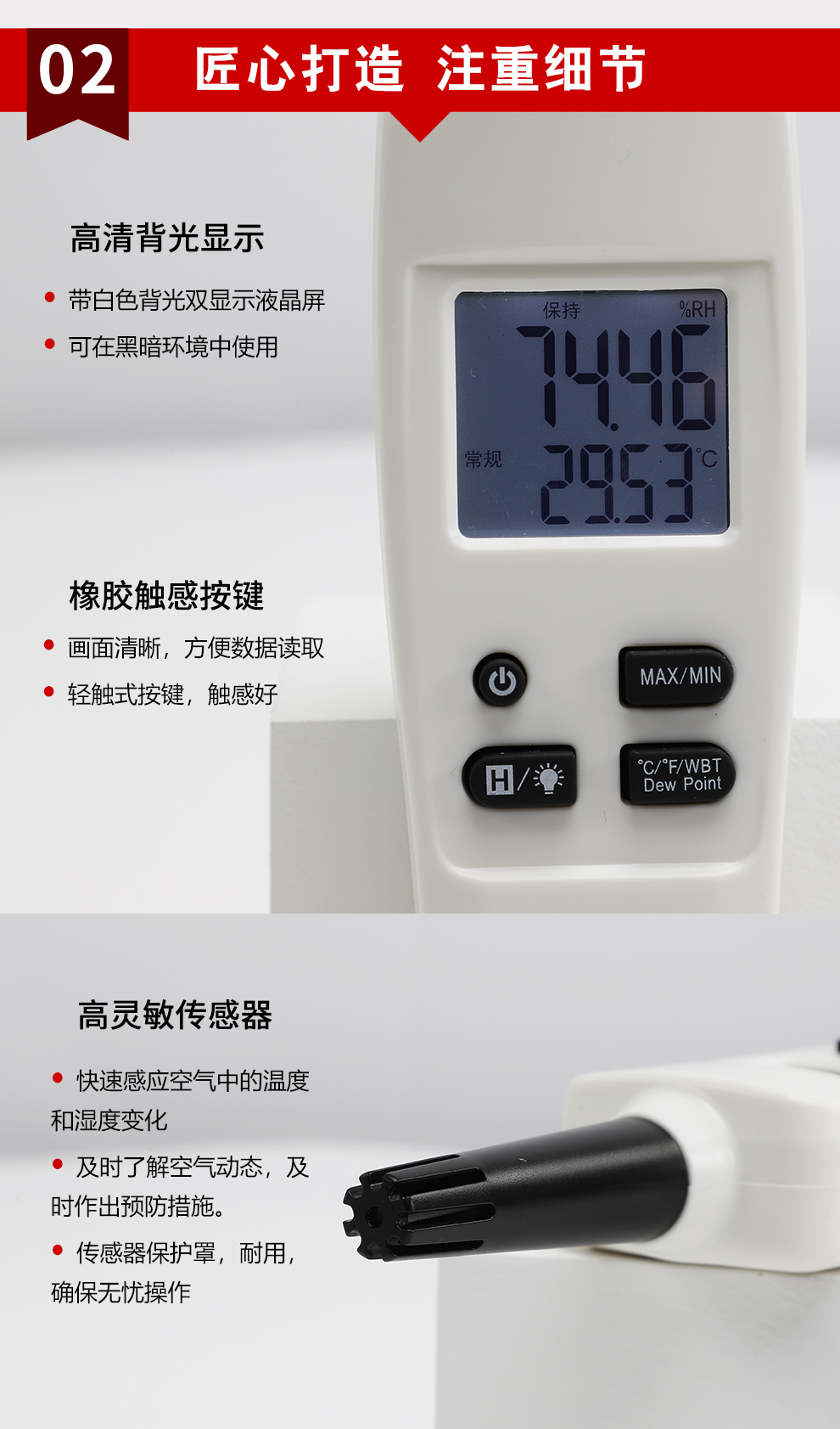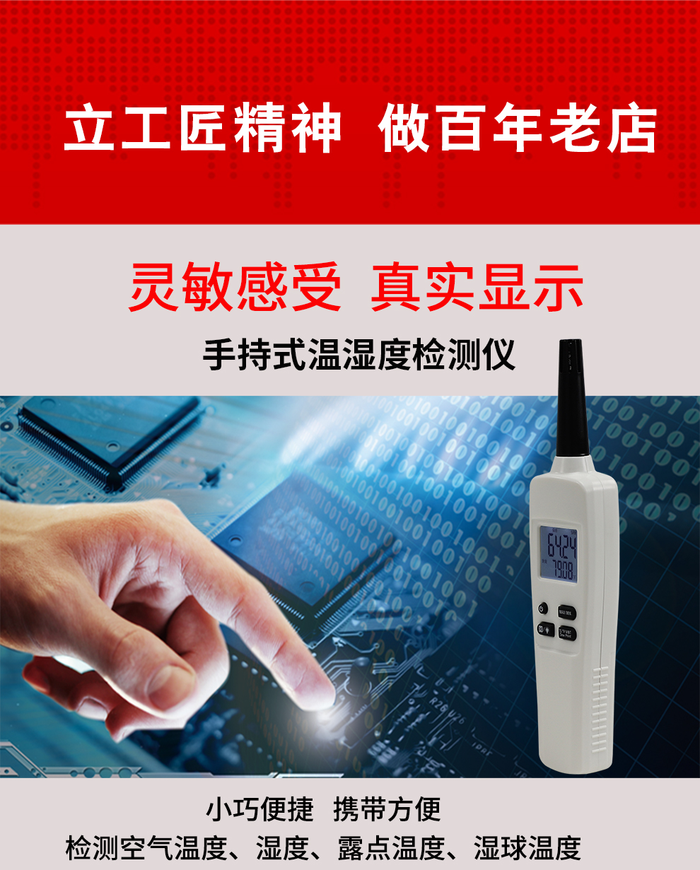 OHR-WS60系列手持式溫濕度檢測儀采用進口空氣溫度/濕度傳感器,響應時間快,具有空氣溫度、濕度、露點 溫度、濕球溫度測量功能,還具備最大值、最小值測量及數(shù)據(jù)保持功能。手持式高精度測量、小巧的外形便于攜 帶和使用,帶白色背光的雙顯示液晶屏可在黑暗環(huán)境中使用。