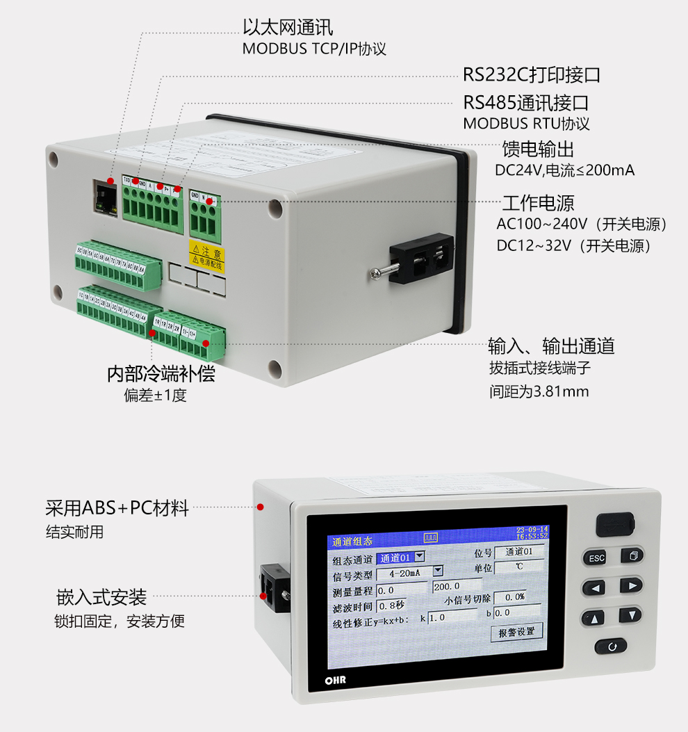 OHR-G100T系列彩色無紙記錄儀是一款體積小巧、功能強大的無紙記錄儀。采用大屏高清真彩液晶屏為顯示 窗口,使產(chǎn)品具有顯示清晰、色彩豐富等特點。內(nèi)核采用高速、高性能32位ARM微處理器,操作簡便、響應(yīng)快 ,記錄存儲與控制功能強大,是一款功能齊全、操作方便、精確可靠、高性價比的產(chǎn)品,在各行各業(yè)中得到廣泛 應(yīng)用。