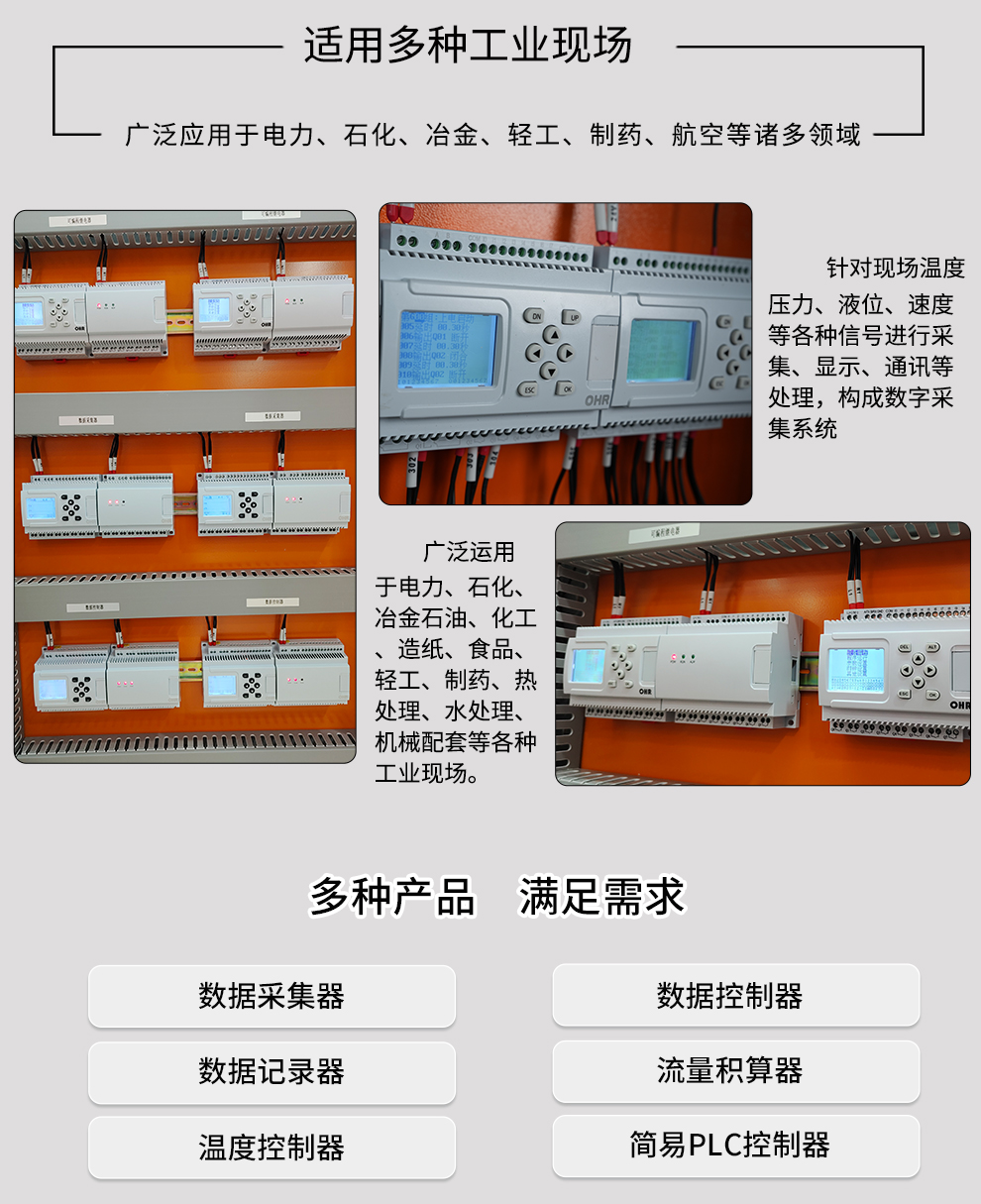 NHR-PR30系列數據采集器采用高速、高性能32位ARM微處理器,多重保護和隔離設計,抗干擾能力強, 可靠性高。顯示功能強大,具有實時曲線畫面、數顯畫面。儀表采用主副機結構設計,主機可提供4路萬能信號輸入,通道間相互隔離,RS485 通訊、以太網通訊等功能,連接副機可將I/O容量擴展至8路輸入。