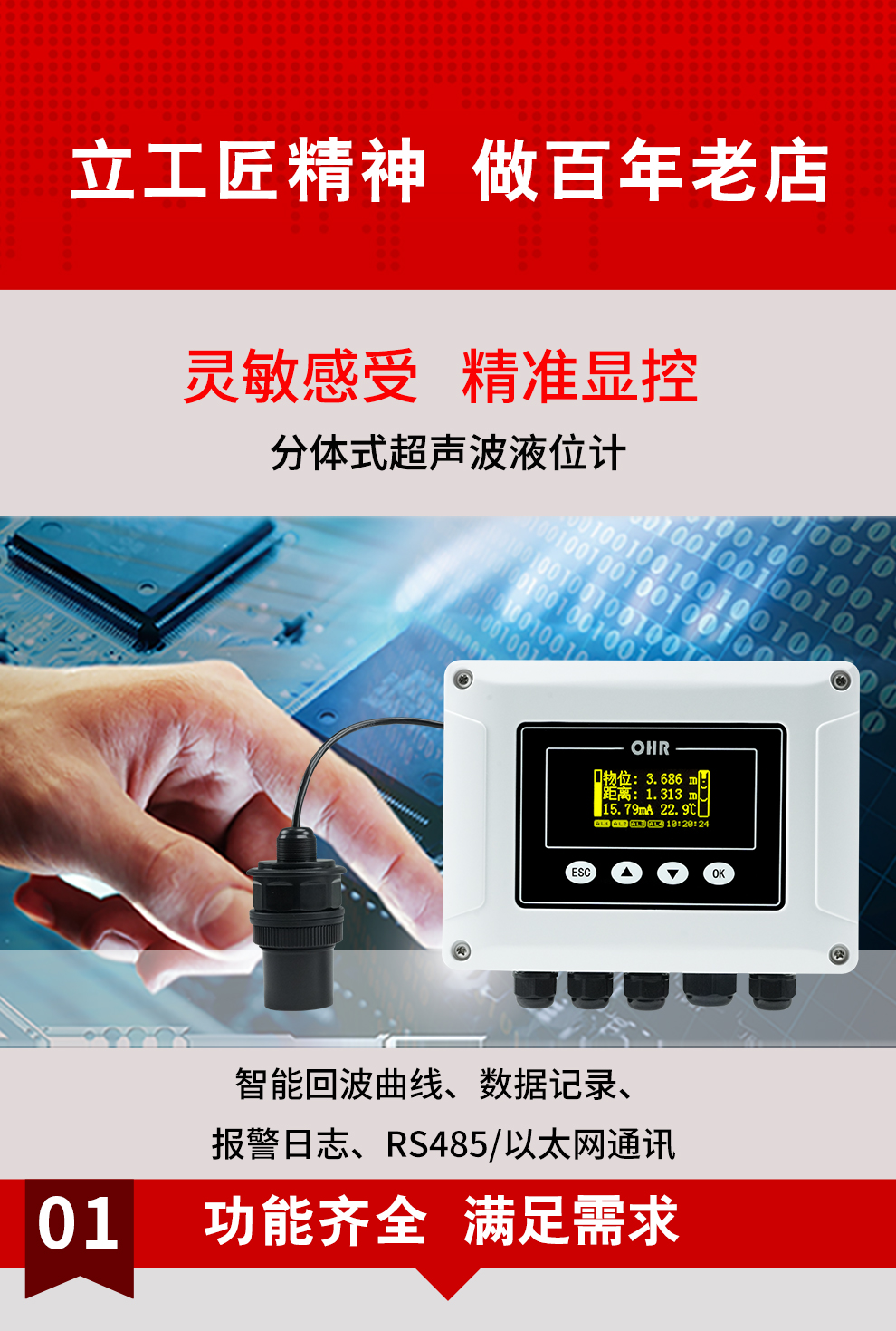 OHR - LC11 系列分體式超聲波液位計(jì),是一款功能全面且便捷實(shí)用的液位 / 物位測(cè)量?jī)x器。它具備數(shù)據(jù)記錄與報(bào)警日志功能,安裝與維護(hù)都極為簡(jiǎn)便。該液位計(jì)采用非接觸式測(cè)量,無(wú)需與介質(zhì)直接接觸,就能精準(zhǔn)滿足大多數(shù)液位 / 物位的測(cè)量需求。