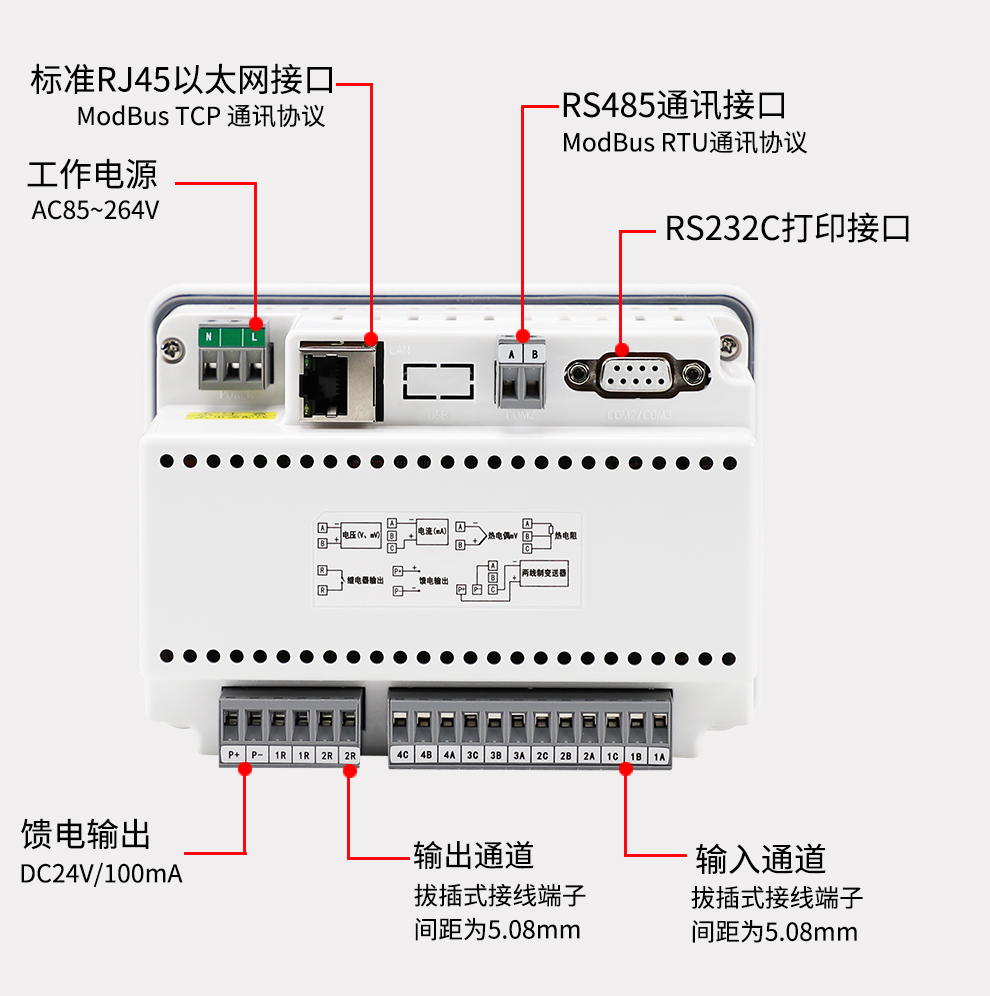 OHR系列觸摸屏數(shù)顯表采用新型大規(guī)模集成電路,對(duì)輸入、輸出、電源、信號(hào)采取可靠保護(hù)和強(qiáng)抗干擾設(shè)計(jì)。4路萬能信號(hào)輸入(可組態(tài)選擇輸入:標(biāo)準(zhǔn)電壓、標(biāo)準(zhǔn)電流、熱電偶、熱電阻、毫伏等)。可帶2路報(bào)警輸出,1個(gè)饋電輸出,RS485通訊接口,以太網(wǎng)接口,微型打印機(jī)接口;具有強(qiáng)大的顯示功能,實(shí)時(shí)測(cè)量顯示,棒圖顯示,報(bào)警狀態(tài)顯示,組態(tài)畫面顯示等。
