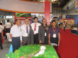 虹潤公司的展臺以中國傳統(tǒng)元素為主導(dǎo)設(shè)計風(fēng)格,在展臺的頂端,一副中國書法卷軸畫緩緩展開,“虹潤儀表”4個宋體大字在祥云的襯托下顯的雄渾有力。虹潤不怕遠(yuǎn)征難的巨幅宣傳畫位于虹潤公司前臺的正上方,畫中蒼鷹在云端翱翔,虹潤員工團(tuán)結(jié)一心,攜手并肩,朝著既定的目標(biāo)勇攀高峰,奮勇前進(jìn)。在展臺上虹潤公司還展示了按照順昌公司1:220比例制作的縮微全景沙盤。