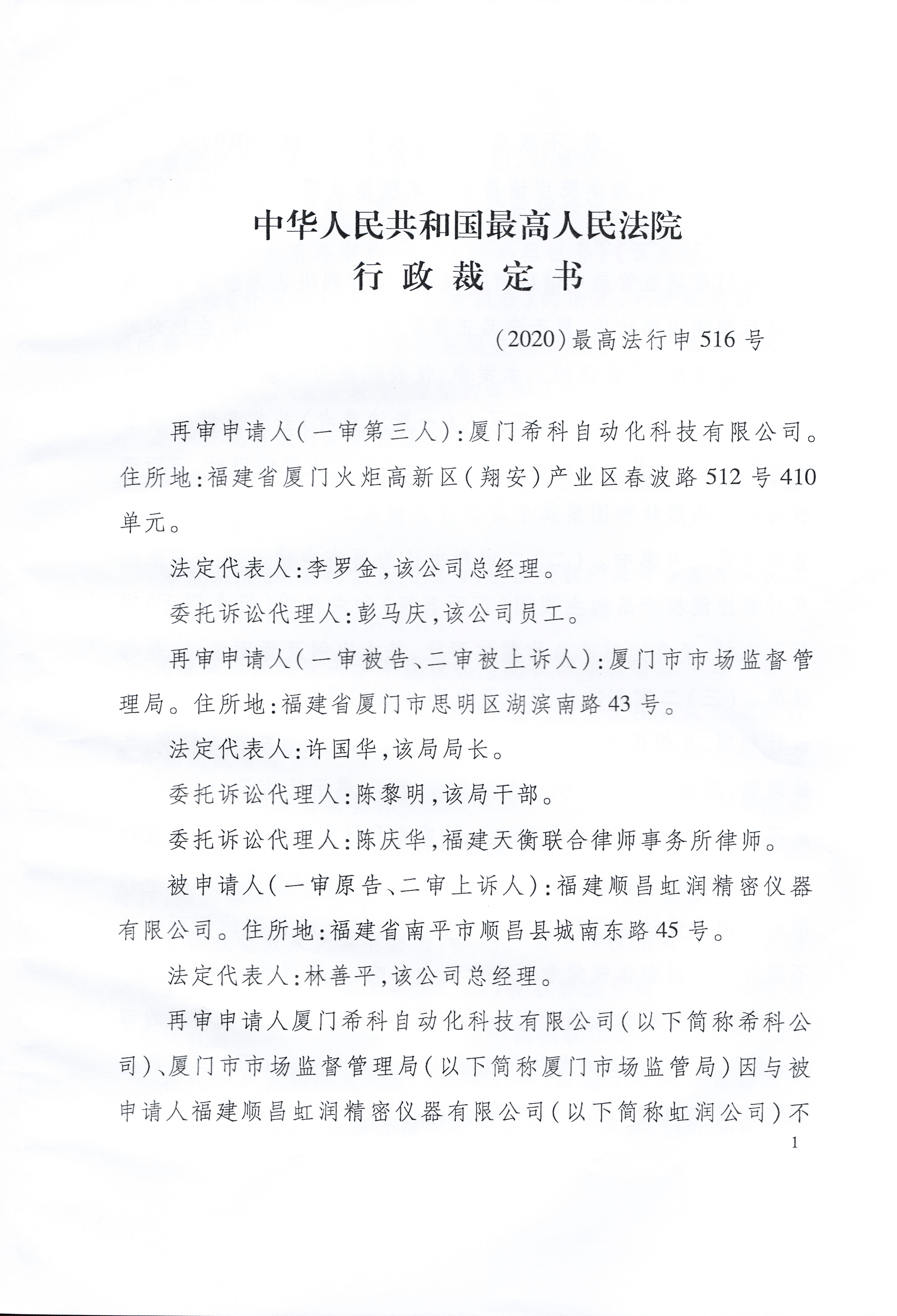 該案于2019年7月30日由福建省高級(jí)人民法院終審判定廈門希科公司侵犯虹潤公司專利權(quán)。希科公司不服于2019年10月31日又向最高人民法院提出再審,最高人民法院在經(jīng)過長(zhǎng)期的嚴(yán)格調(diào)查審理后,于近期最終判定廈門希科公司侵權(quán)并駁回其上訴請(qǐng)求。