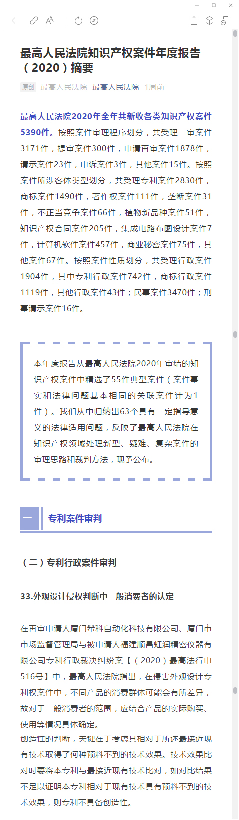 《最高人民法院知識(shí)產(chǎn)權(quán)案件年度報(bào)告(2020)摘要》 之典型案件 |