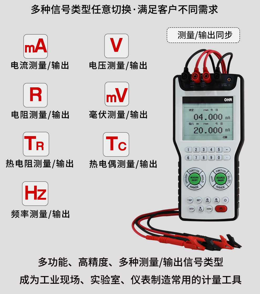OHR-A00過程校驗儀是一種多功能、高精度的便攜式儀器,可用于校準、測試工業(yè)過程裝置及各種電氣設備,支持電流、電壓、電阻、頻率、熱電偶、熱電阻等多種信號類型,最高精度可達0.01%F.S,是工業(yè)現(xiàn)場、實驗室以及各類儀表制造商必備的計量測試工具。
