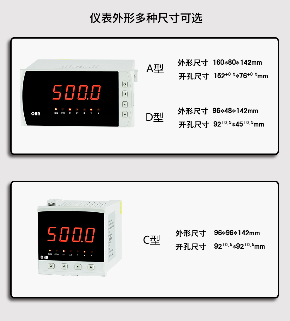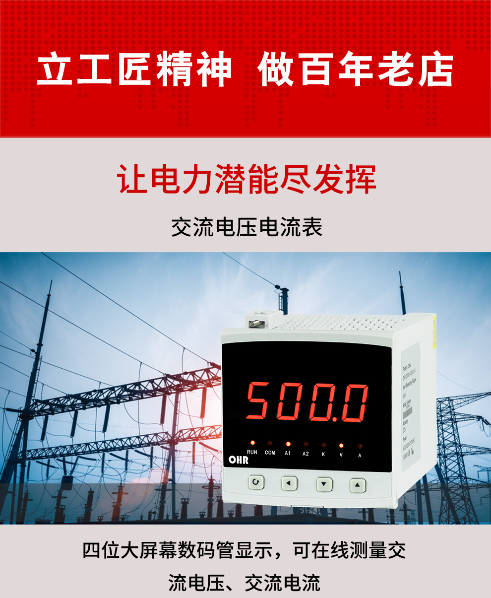 OHR-C200系列交流電壓/電流表為新 一代可編程智能儀表,它采用大規(guī)模集成電路,應(yīng)用數(shù)字采樣技術(shù),對(duì)單相電氣線路中的電壓、電流進(jìn)行實(shí)時(shí)測(cè)量、顯示和控制,并通過RS485接口或模擬量變送輸出接口對(duì)被測(cè)量電量數(shù)據(jù)進(jìn)行遠(yuǎn)傳。