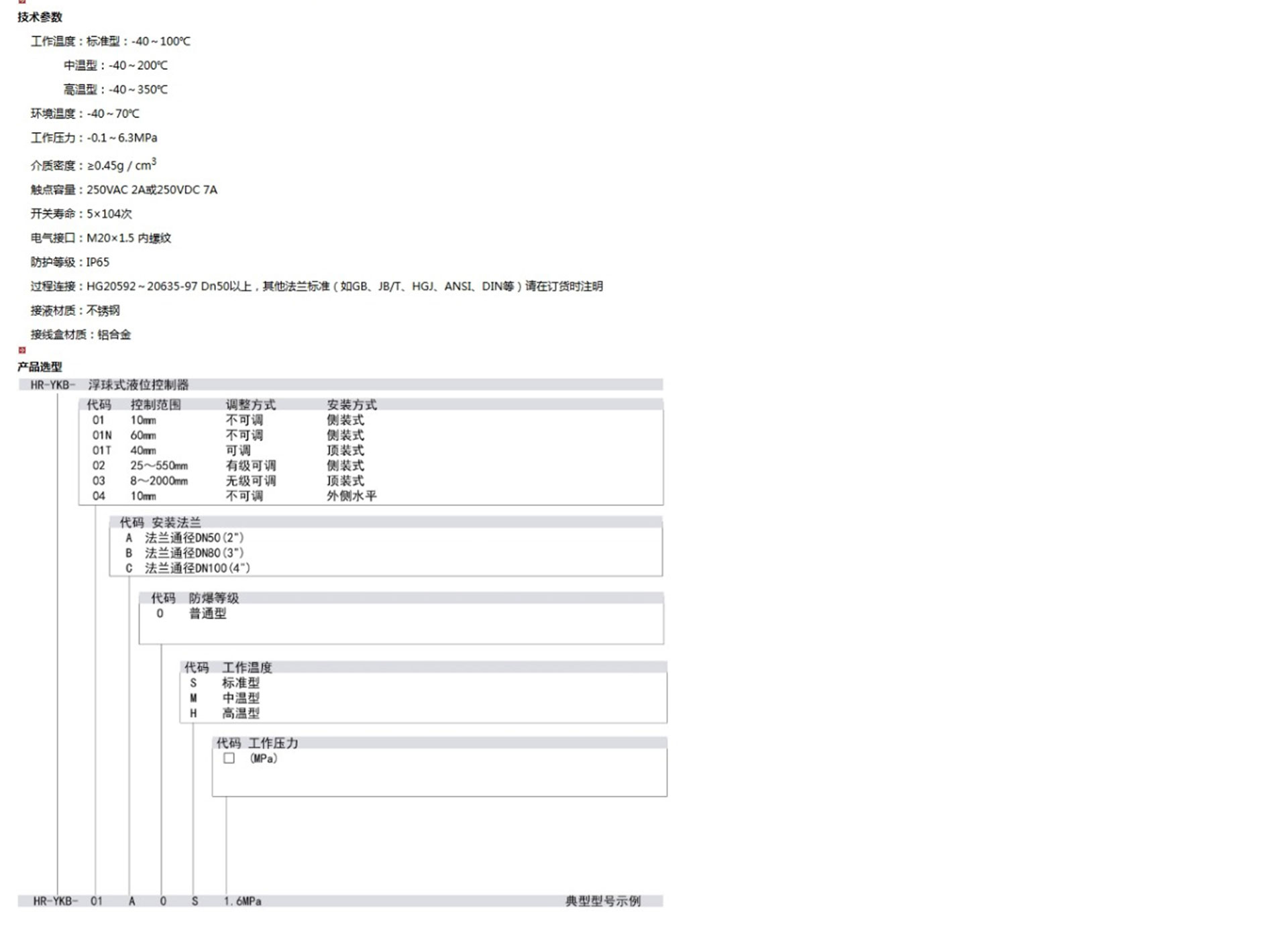 HR-YKB系列浮球式液位控制器,廣泛適用于石油、化工、電力、冶金、食品、制藥、造紙等行業(yè),能實(shí)現(xiàn)對(duì)各類容器內(nèi)液位的自動(dòng)報(bào)警或控制。